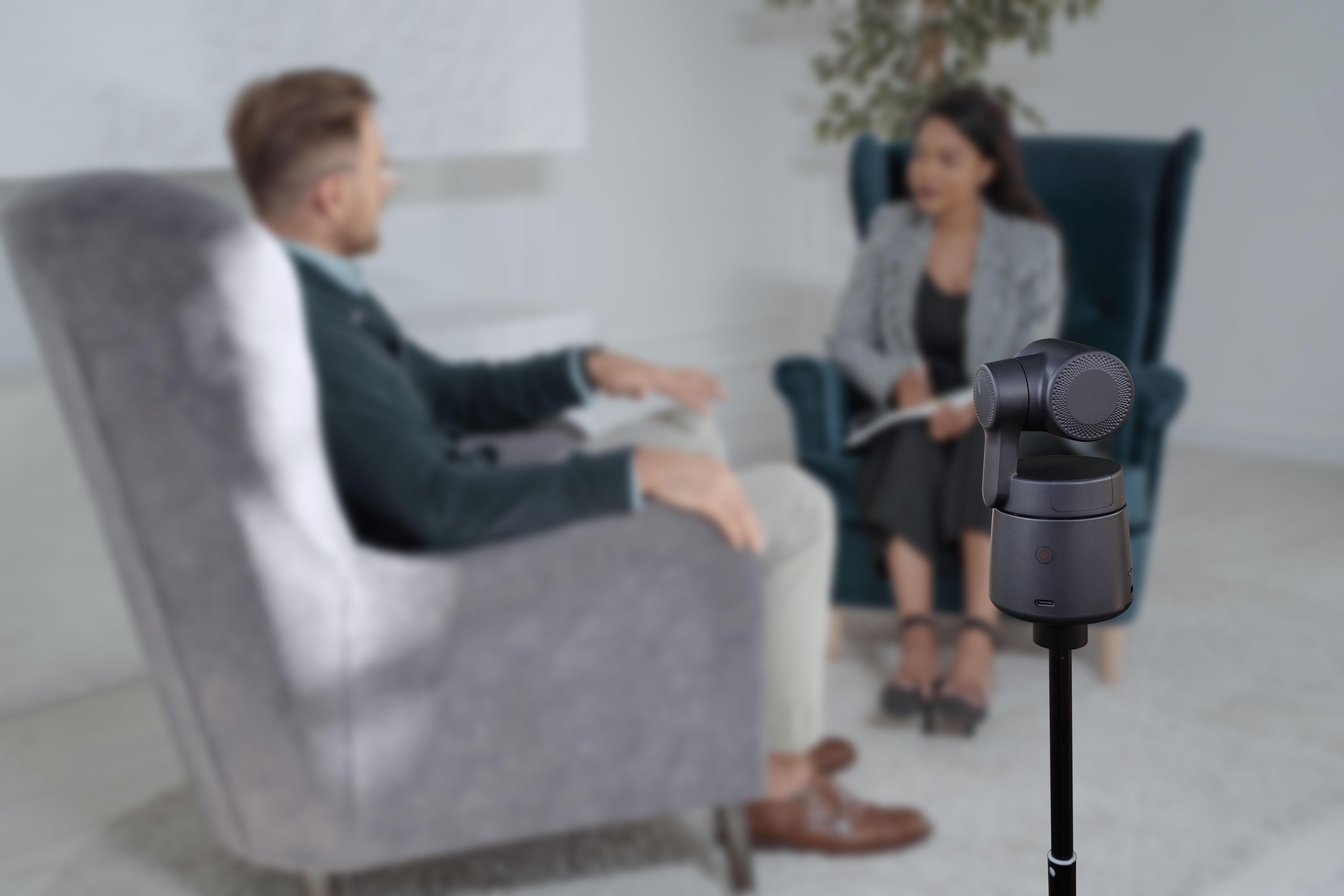 With this camera it is possible to reduce an interview, for which previously up to 3 cameras were needed, to one camera. OBSBOT goes one step further, the Tail Air, can be operated completely wireless via the built-in battery.