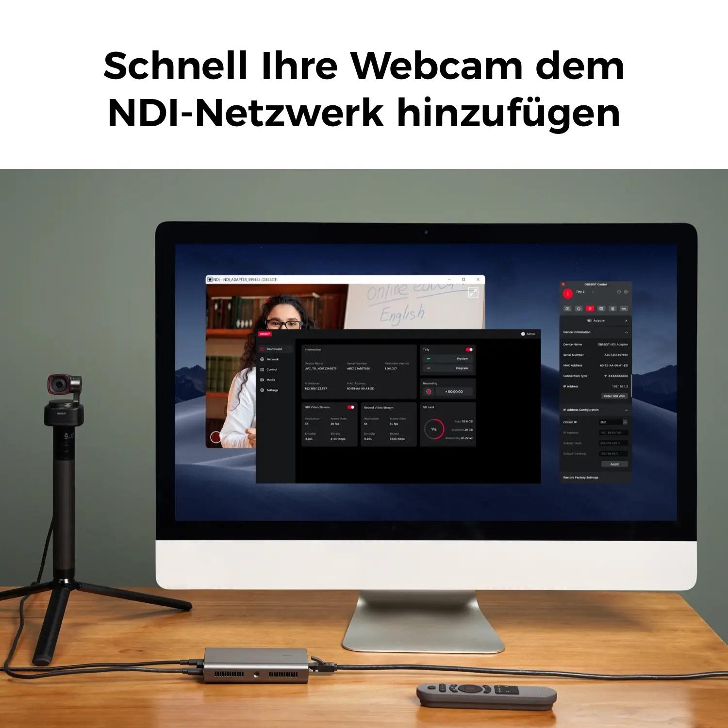 Connect your webcam with this adapter and immediately enjoy high-quality, low-latency transmission over the NDI network. Enhance your livestream experience with powerful NDI connectivity.